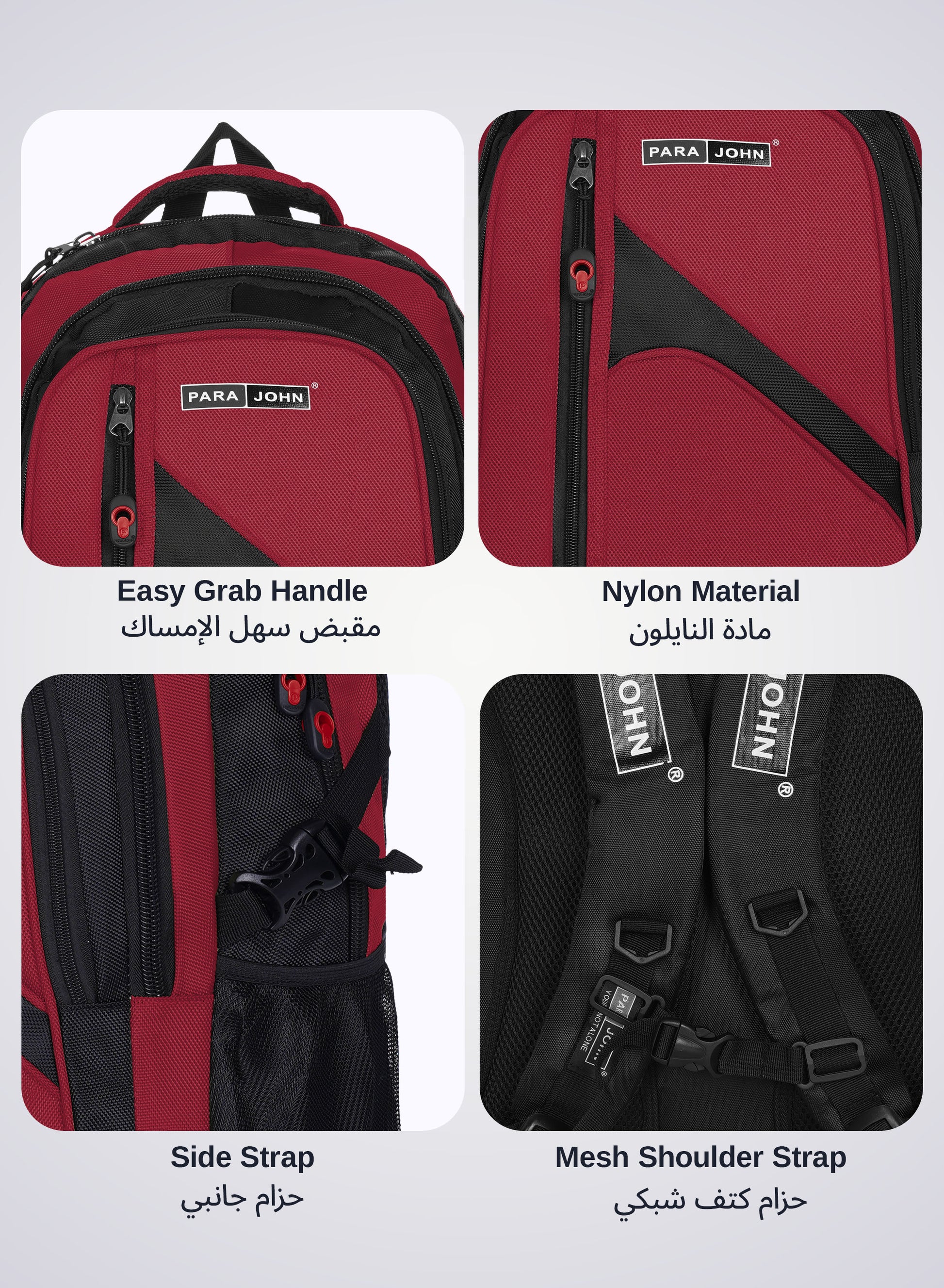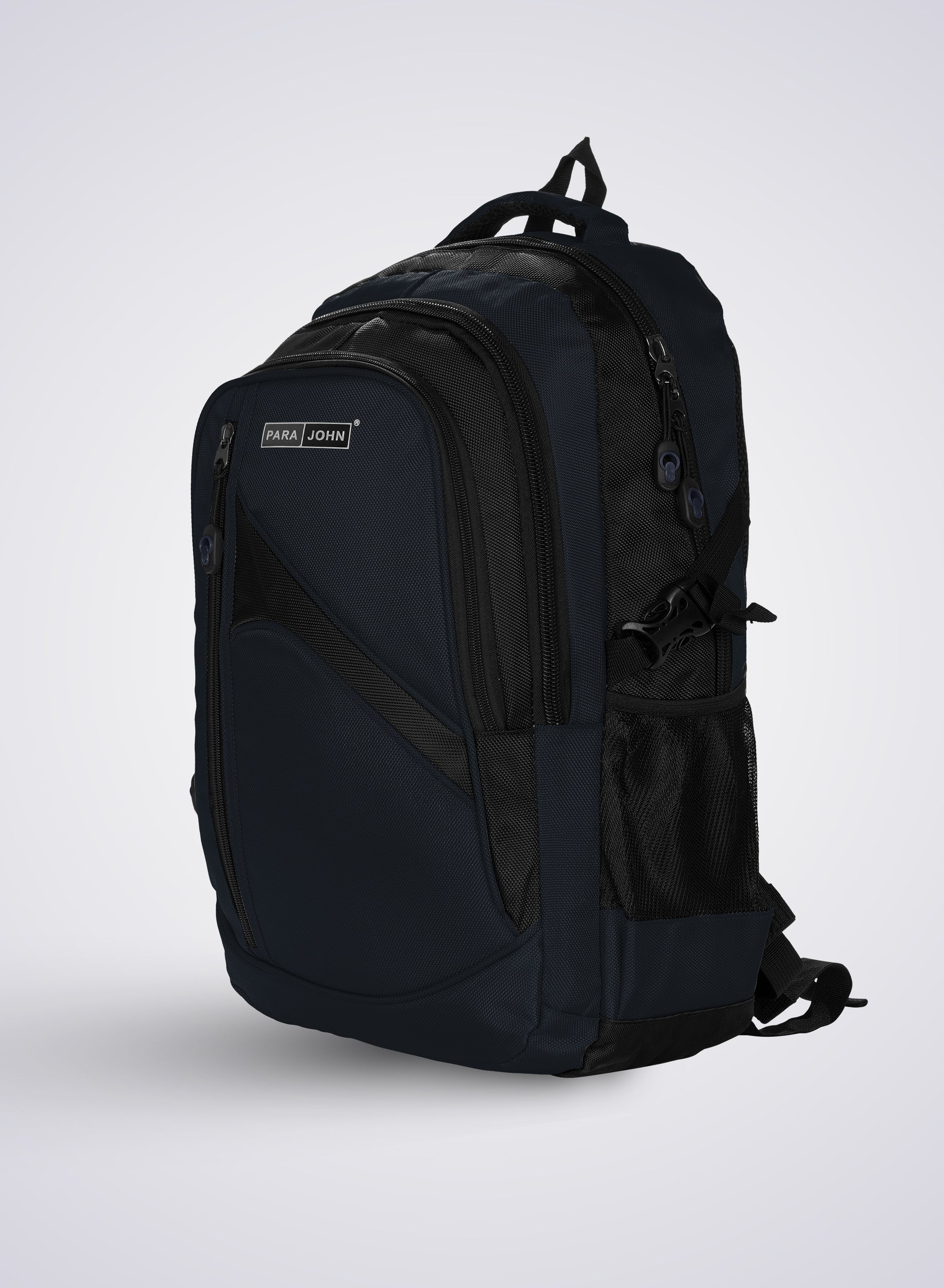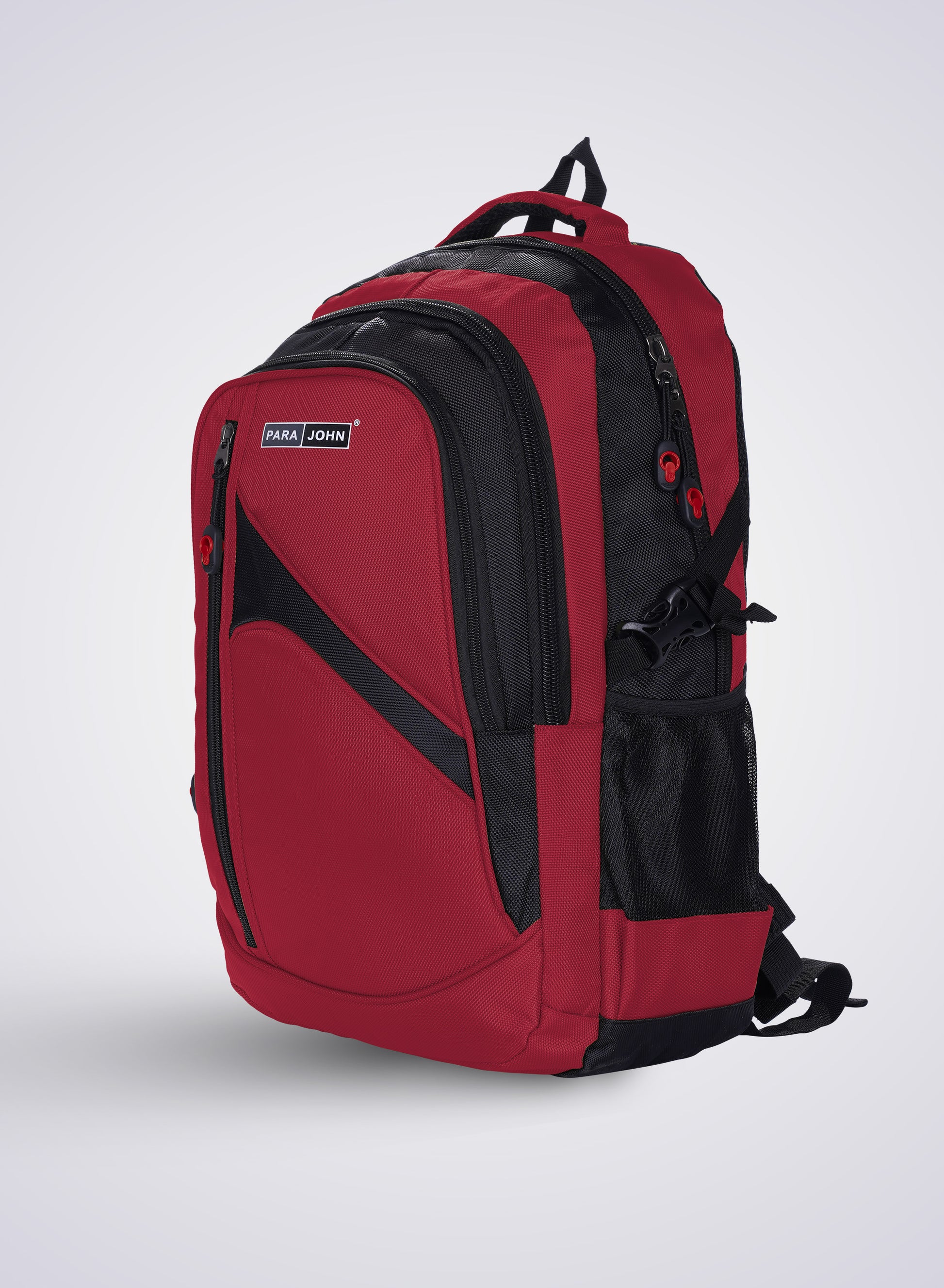 Para John Stylish & Durable Travel Backpack – Designed for daily use, school, or weekend travel, the Para John backpack combines comfort, style, and functionality. Made from durable, scratch-resistant polyester, it features a spacious main compartment for books and bulky items, a front zip pocket for essentials, and two mesh side pockets for water bottles or an umbrella. Ergonomically designed with padded shoulder straps and a breathable mesh back panel, it offers all-day comfort. The high-quality zippers and reinforced stitching ensure long-lasting use. With vibrant colour options and a sleek look, this backpack is perfect for students, professionals, and travelers who need reliable storage and style on the go. Crafted by PARA JOHN, an ISO 9001:2015 and SGS-certified company, this set promises durability and quality for every adventure.