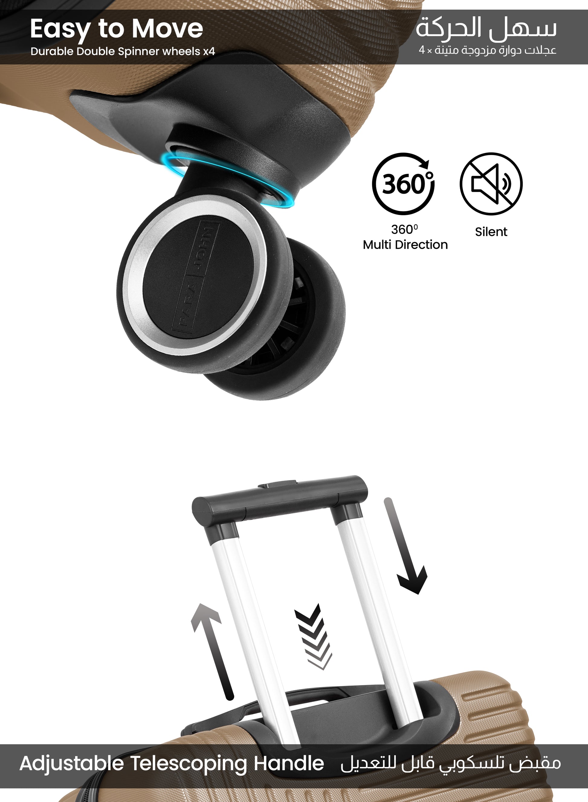 360° Spinner Wheels: Glide effortlessly through airports, train stations, and streets with smooth and stable mobility.